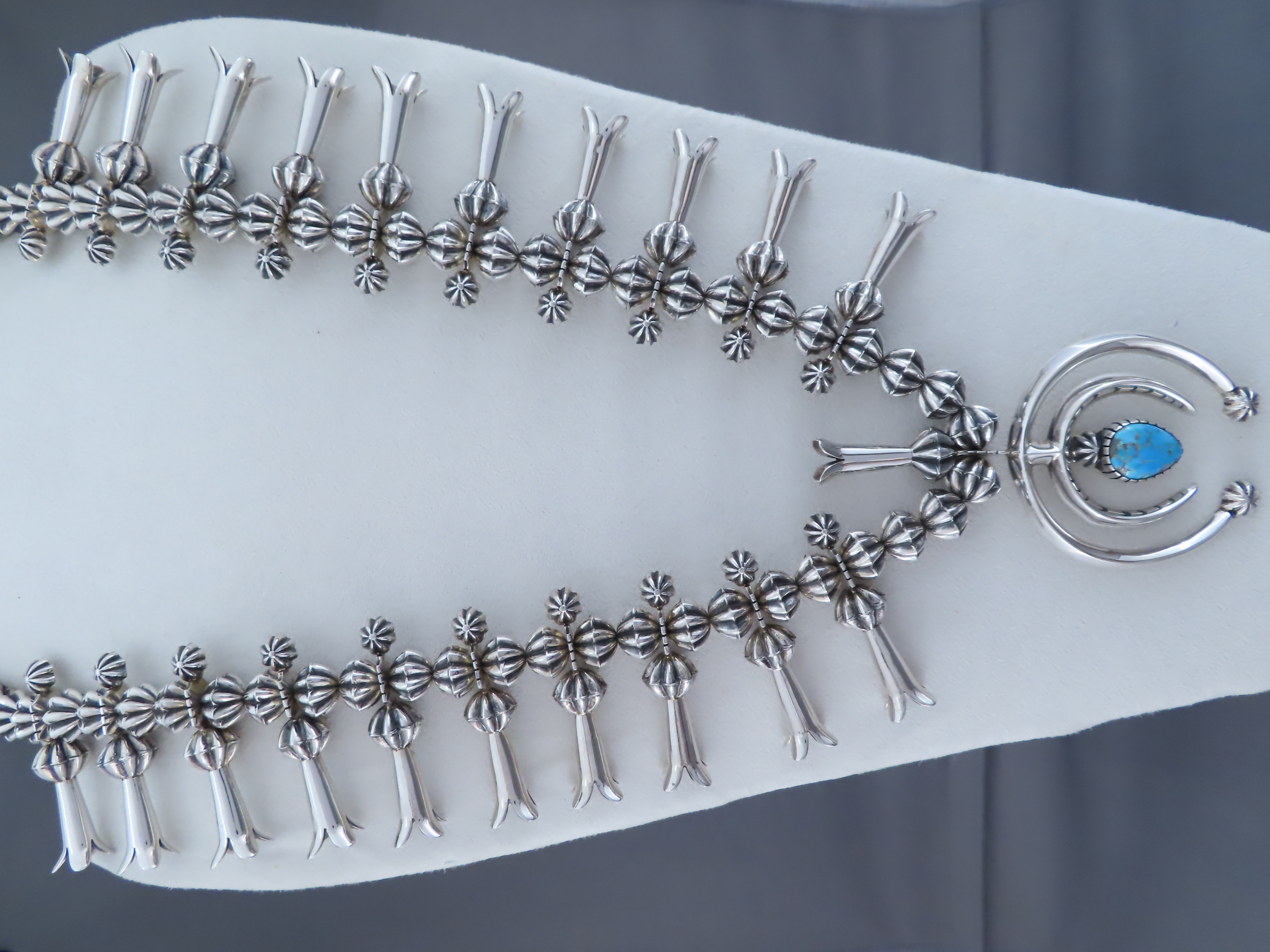 Squash Blossom Necklace with Morenci Turquoise by Kyle Lee