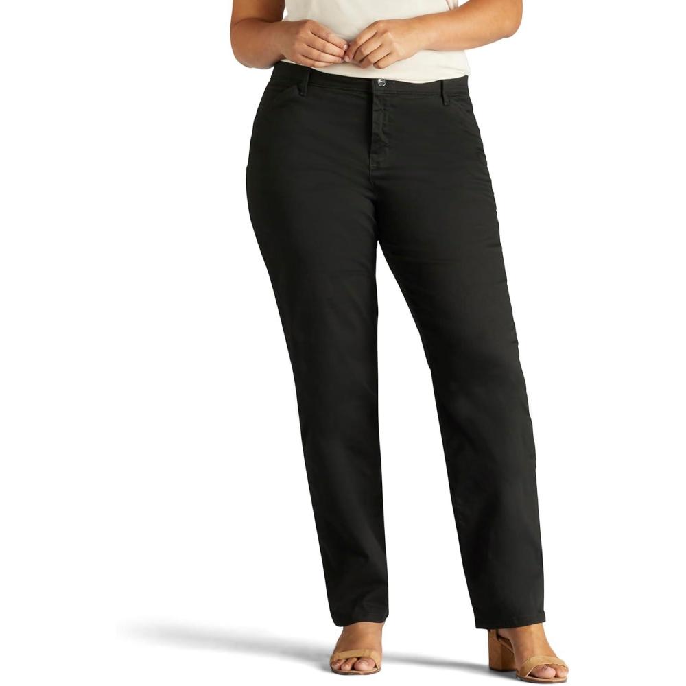 Lee Womens Plus Size Wrinkle Free Relaxed Fit Straight Leg Pant(Black)