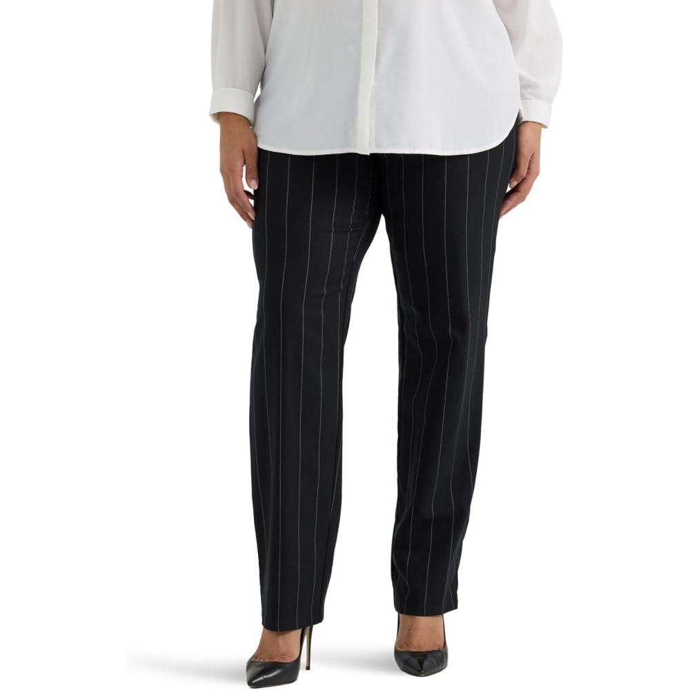 Lee Womens Plus Size Wrinkle Free Relaxed Fit Straight Leg Pant(Black Pinstripe)