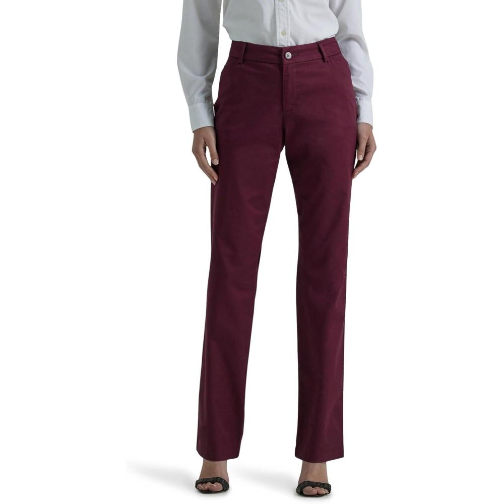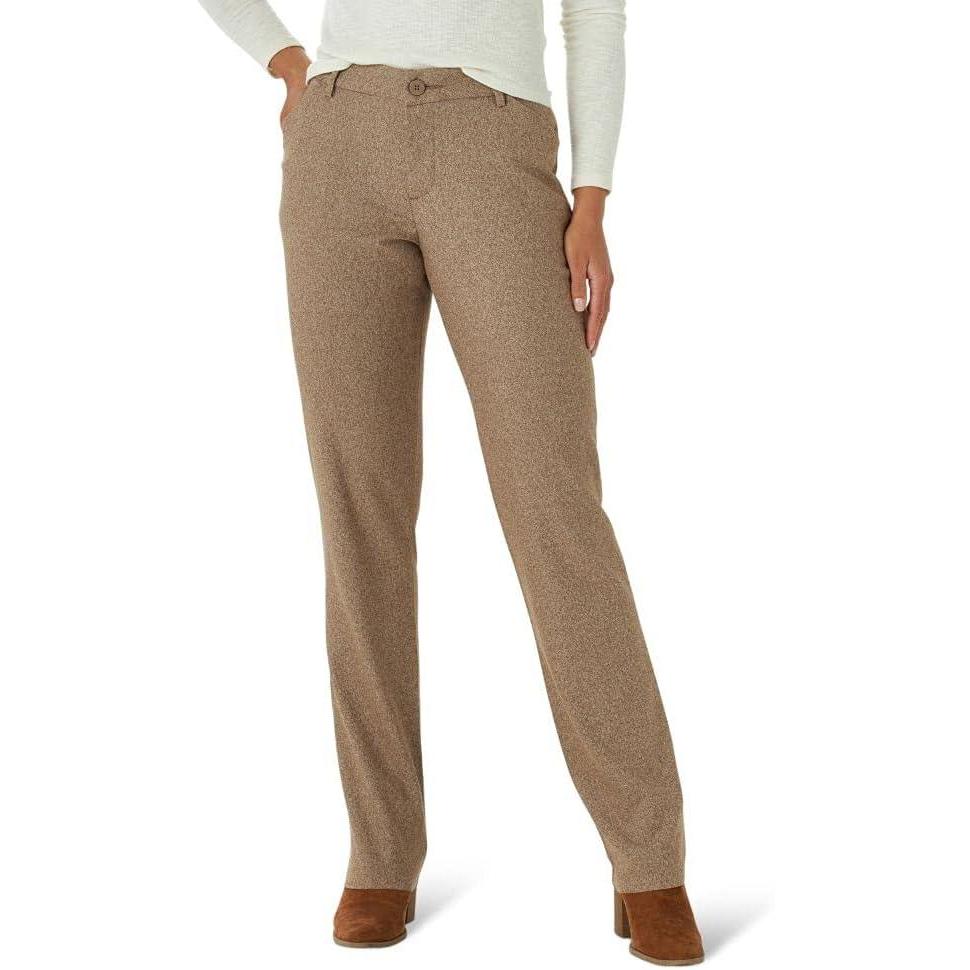 Lee Womens Petite Wrinkle Free Relaxed Fit Straight Leg Pant(Dark Earth)